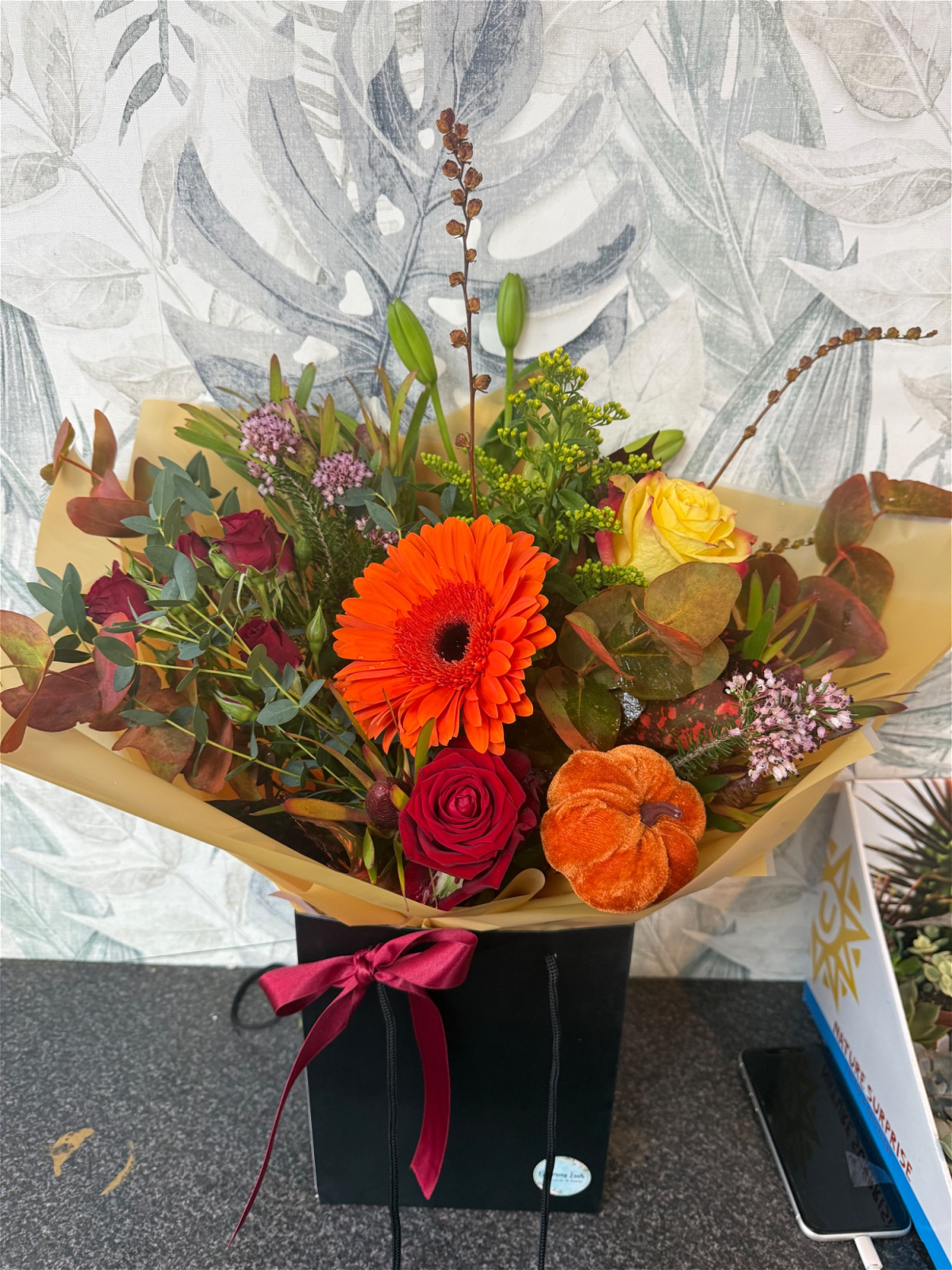 Full of rich seasonal tones — burnt oranges, deep reds, golden yellows and a touch of rustic foliage — this bouquet truly captures the beauty of autumn. Perfect for a gift or to treat yourself and brighten your home this season